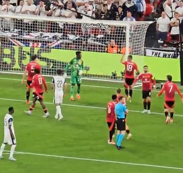 O goleiro Onana e o meio -campista Casemiro pareciam trocar algumas palavras favoritas depois que o zagueiro Luke Shaw limpou a bola no estágio de abertura da partida.