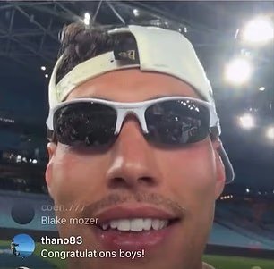 Quando os jogadores estavam no centro do campo para desfrutar de algumas bebidas frias, Ricky foi ao vivo no Instagram para se concentrar em comemorar.