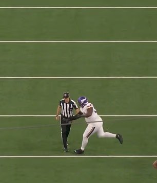 Durante o terceiro quarto no Sophie Stadium, o oficial Andy Warner O oficial Andy Warner enfrentou o atacante dos Vikings, Javon Hargrave, que pesa 307 libras.