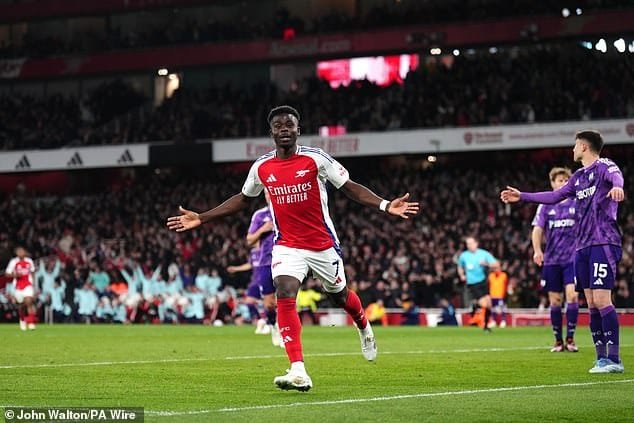 Bukayo Saka comemora apenas sete minutos de seu retorno após três meses