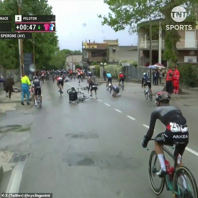Giro D’Italia foi suspenso na quinta -feira, depois que um grande acidente se espalhou pelo campo na sexta fase da famosa corrida na quinta -feira.