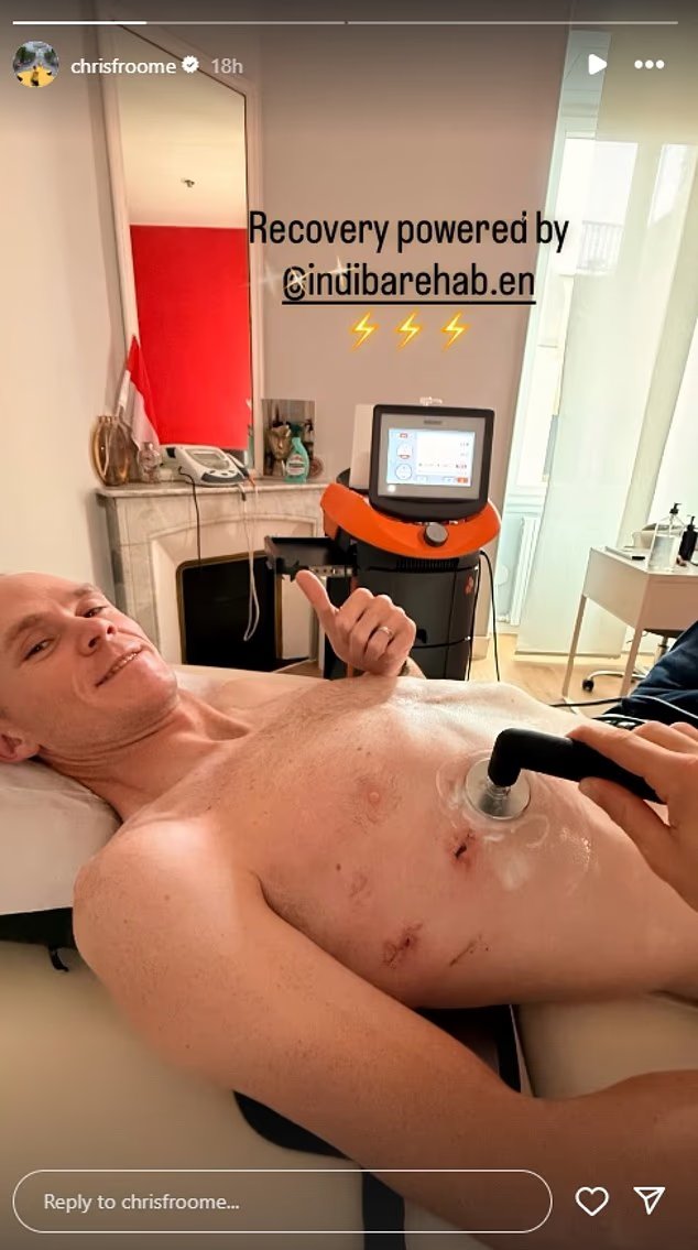 A lenda do ciclismo britânico Chris Fruum compartilhou os ferimentos sofridos durante seu terrível acidente em agosto.