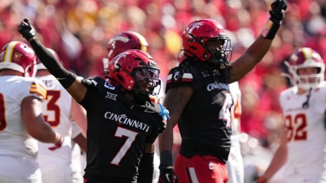 Cincinnati-Brendon Sorsby passou por 214 jardas e dois touchdown, Evan Prir 111 jardas e dois TD e Sincenti no sábado para derrotar o estado de Iowa, 14 pontos nos primeiros trimestres de 17 pontos para derrotar o estado de Iowa.