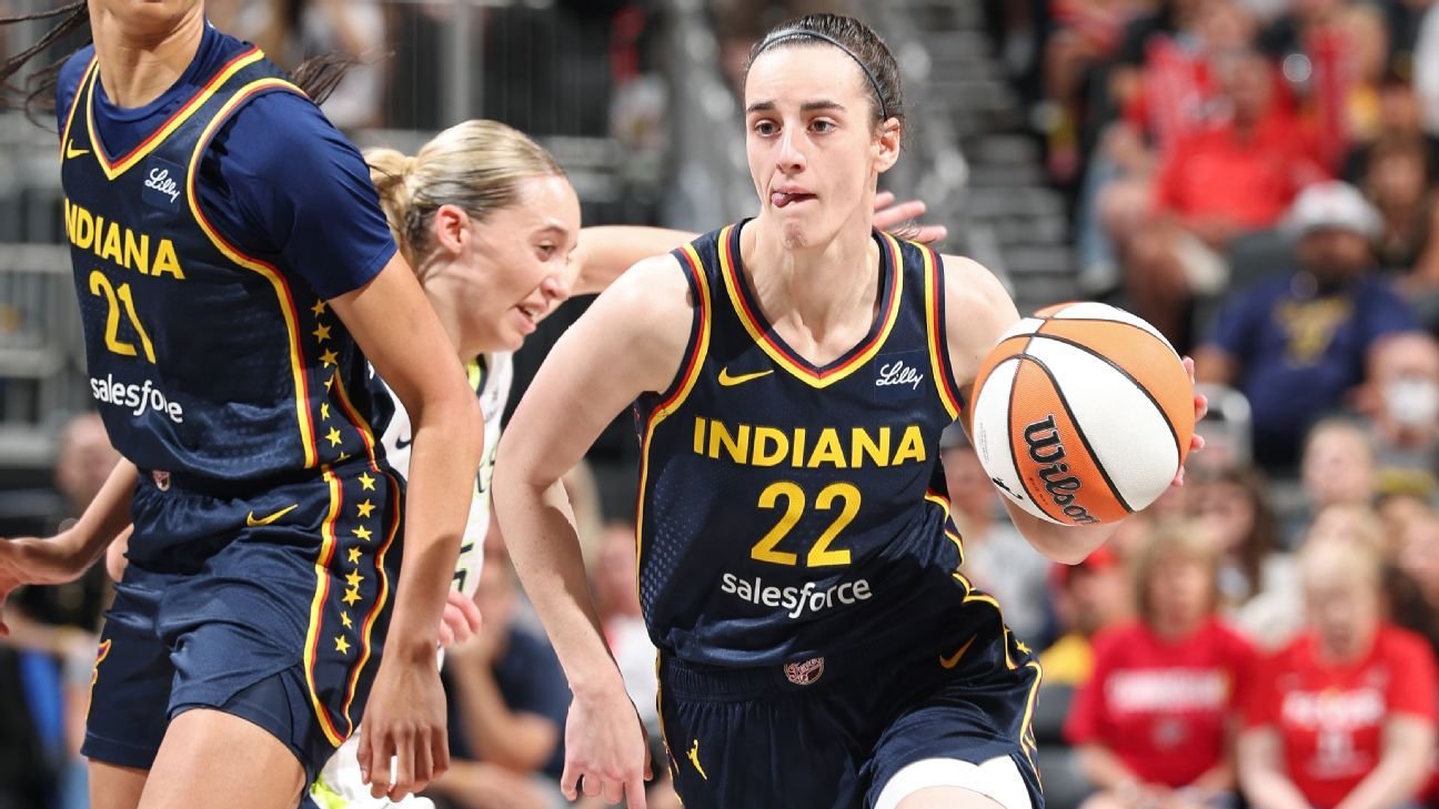 Caitlin Clark lança um centavo quase completo perto de Sophie Cunningham para um impressionante balde de febre.