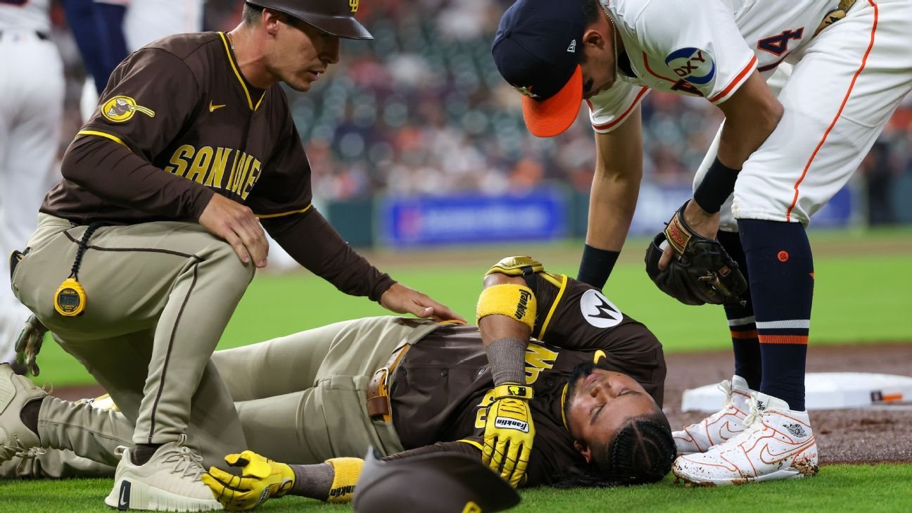 Arage foi deixado de fora do estádio em uma encosto. Ele foi levado ao hospital, mas retornou a Balpark depois de vencer San Diego por 3-2.
