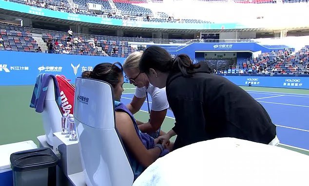 O segundo é 4-1, Radukanu pediu um período médico e sua pressão arterial foi testada na quadra.