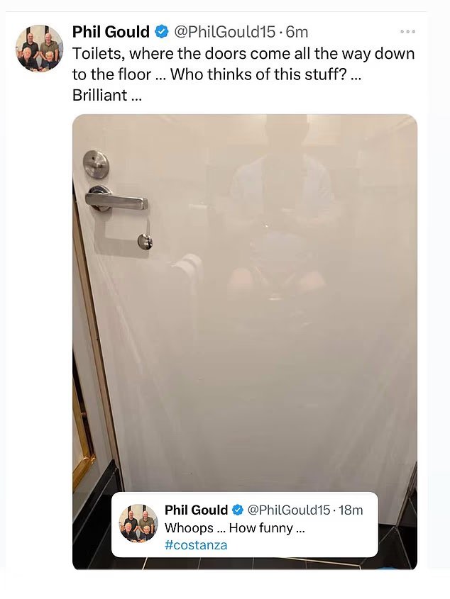 O chefe dos Bulldogs e estrela do canal nove, Phil Gold, removeu uma foto dentro de um cubículo de banheiro público e removeu um tweet quando percebeu que era muito revelado.