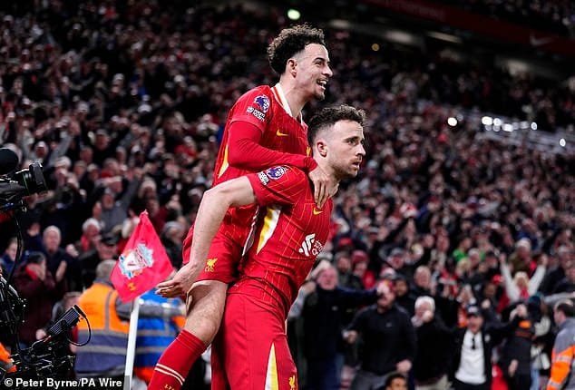 Liverpool derrotou o rival Everton por 3 a 1 na noite de quarta-feira, cortesia de um gol de Diogo Joba.