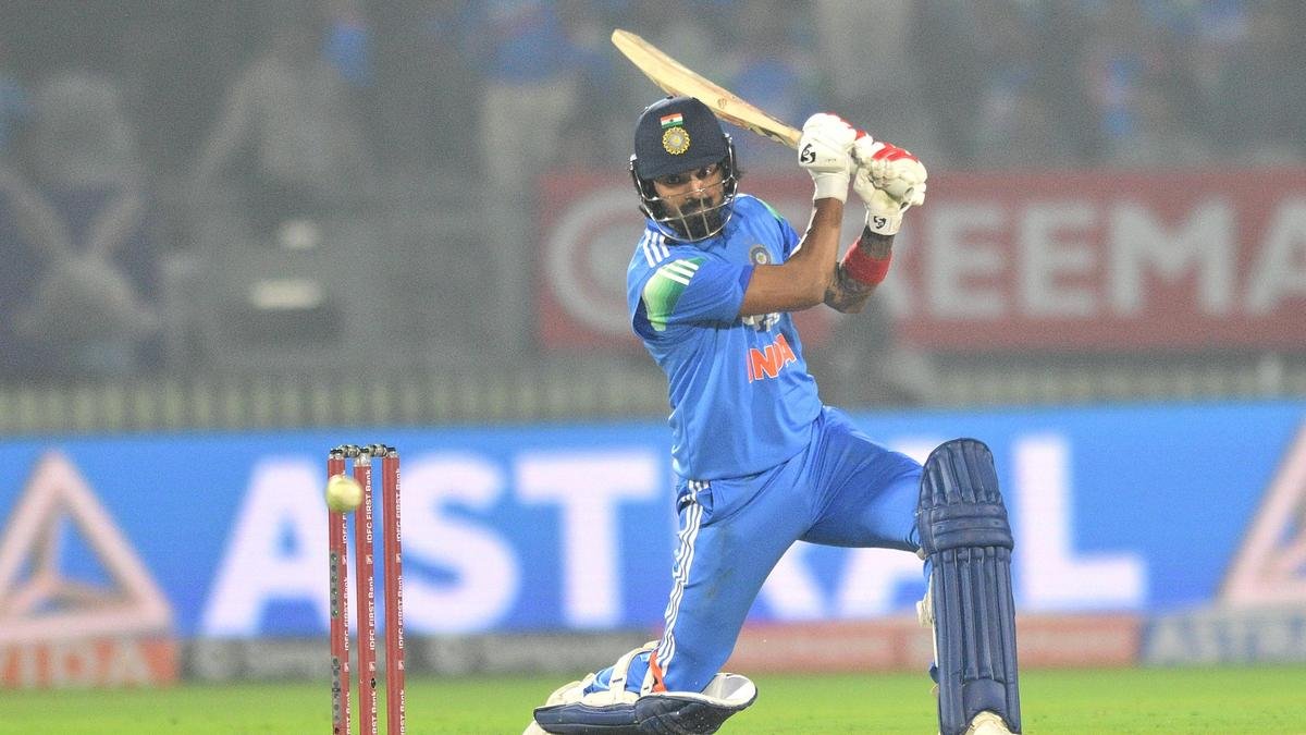 Vadodara: Gujarat: 01/11/2026: KL Rahul da Índia durante a primeira partida de críquete ODI entre Índia e Nova Zelândia no Estádio Kotambi em Vadodara, Gujarat, no domingo, 11 de janeiro de 2026. Foto: Vijay Soneji / The Hindu. | Crédito da foto: Vijay Soneji