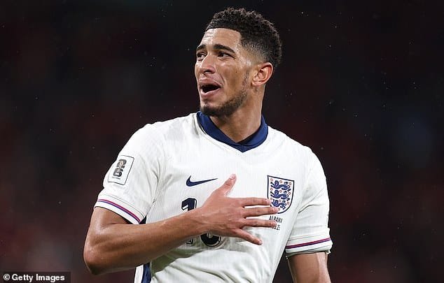A estrela do Real Madrid, Belingham, prestou uma grande assistência ao gol de abertura da Inglaterra contra a Albânia