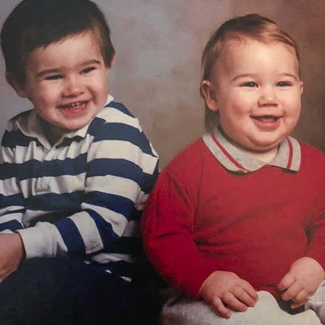 Tocando fotos de família com seu pai, Ed e mãe, Donna, outras também o exibiram antes de se adequar aos chefes.