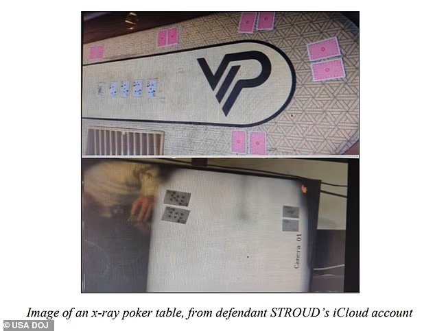 ‘Os réus usaram outras tecnologias de trapaça, como um analisador de bandeja de fichas de pôquer – que é uma bandeja de fichas de pôquer que tenta secretamente ler cartas usando uma câmera escondida – lentes de contato especiais ou óculos que podem ler cartas pré-marcadas e uma mesa de raios X que pode ler as cartas viradas para cima na mesa.’