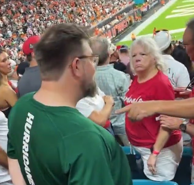 O que aconteceu foi uma aparente briga de gritos entre uma mulher vestindo uma camisa dos ‘Cardinals’, que estava lá com o marido, e uma fã de Miami que parecia estar sozinha.