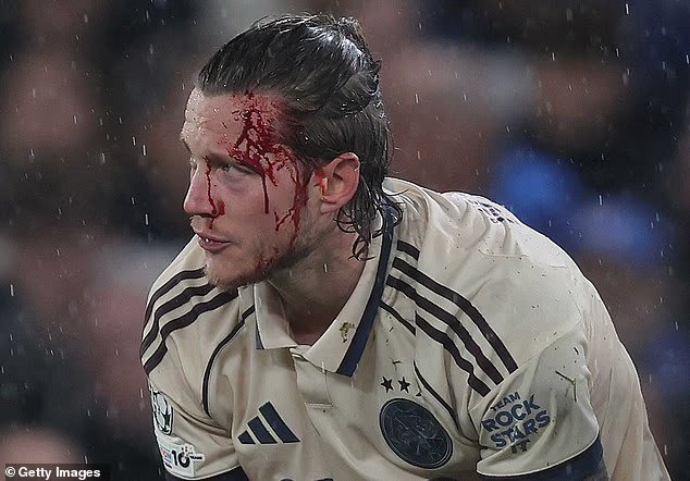 Houve polêmica antes do jogador do Ajax sangrar no primeiro tempo, marcar e ser expulso no intervalo.