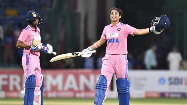 Contra a Austrália, Smriti marcou o século mais rápido em ODIs por um indiano, homem ou mulher, e também registrou o segundo século mais rápido em ODIs femininos ao registrá-lo em 50 bolas.