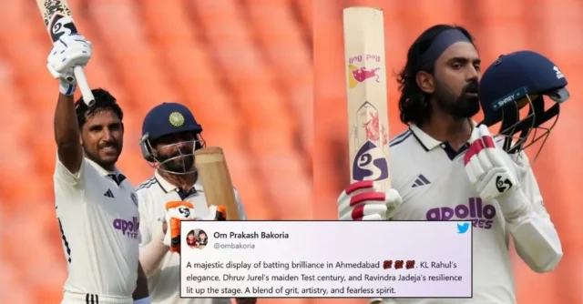 Uma exibição gloriosa do brilho de rebatidas em Ahmedabad foi iluminada no estágio da elegância de Kl Rahul, do século de Teste de Domanada de Dhrov Jurel e da elasticidade de Rabindra Jadeja. Uma mistura de amargura, consciência artística e destemida.@Klhhuuu @Dhruvzurel 21 @Imjadaya @Bcci