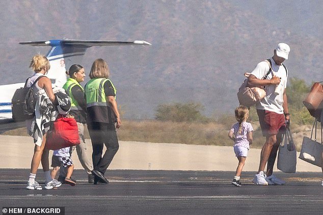 Patrick e Brittany Mahom foram vistos com seus filhos em um aeroporto mexicano na terça -feira