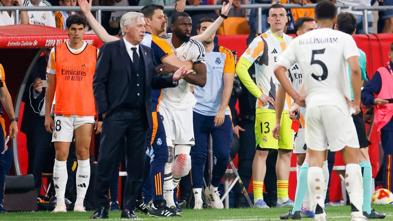 Real Madrid Antonio Rodger A Copa Del de 3-2 da equipe re-defendeu o Barcelona depois que seu cartão vermelho foi banido por seis jogos e parceiro Jude BelinghamO envio foi parado.