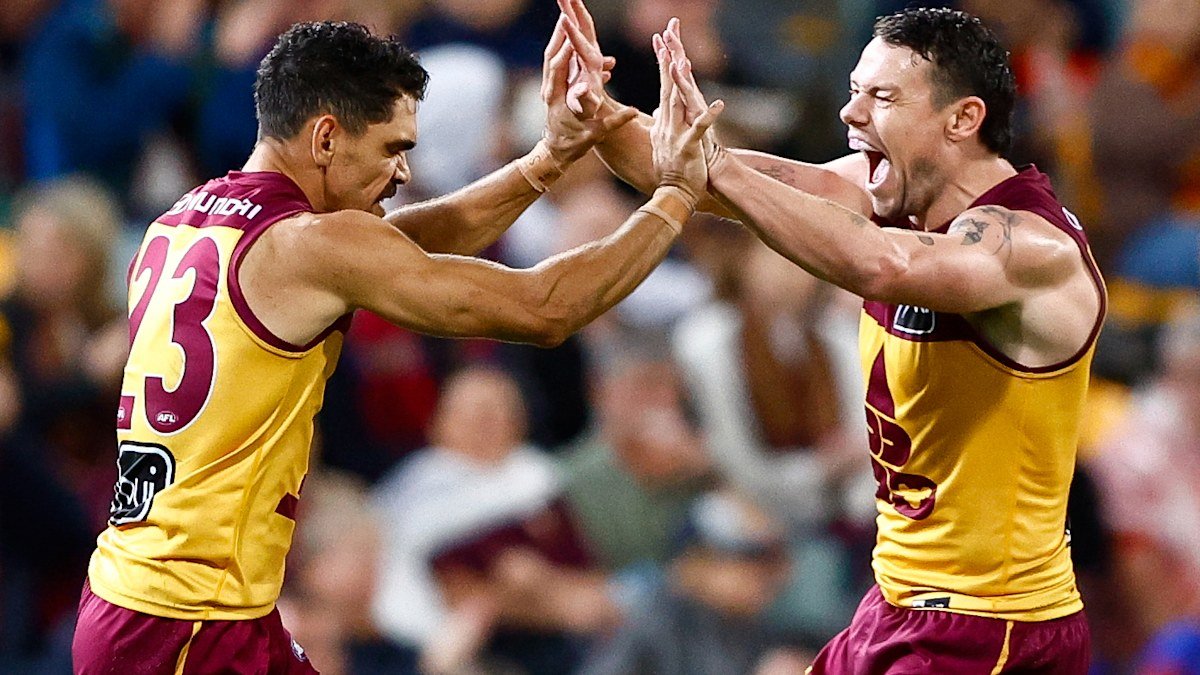 Charlie Cameron, do Lions, comemorou um gol Fotos AFL através da imagem Getty