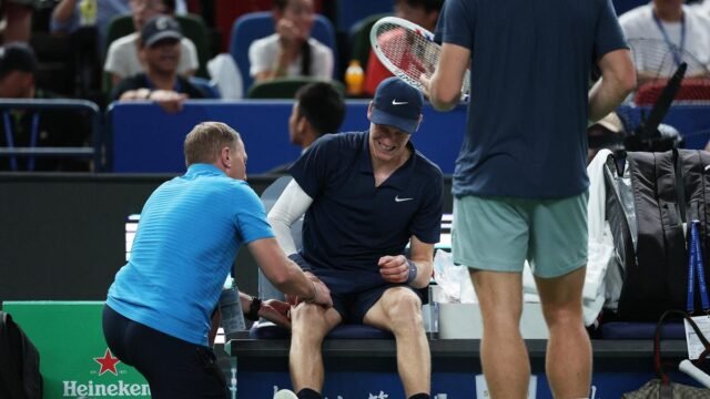 O atual campeão Jannik Sina se aposentou do Masters de Xangai no domingo, após lesão no pé na terceira rodada contra Greeksspore, na Holanda, da Holanda.