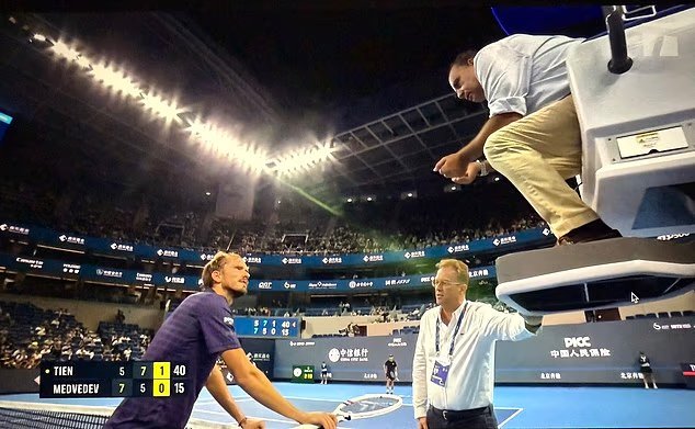 Danil Medvedev esteve envolvido em outro tribunal brilhante com o árbitro da China Open, depois de ser acusado de não tentar durante a partida da semifinal contra Tian, ​​um adolescente talentoso – semanas após seu infame colapso aberto dos EUA.