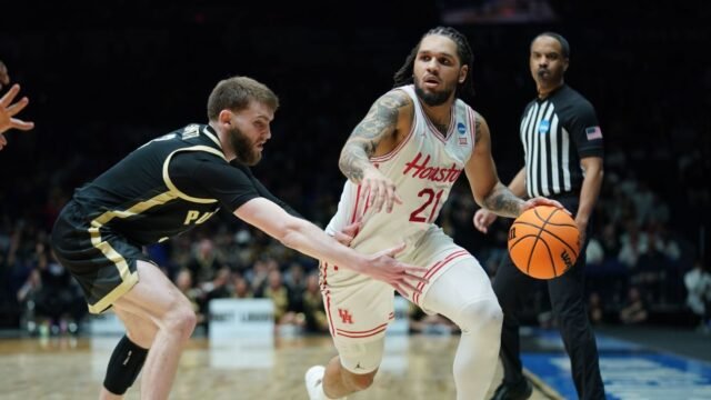 Emmanuel Sharp, Houston Kugers: Clutch City, Babu! Big 12 Tourney MVP, NCAA Tournament Midwest Regional Mop, uma estrela final. Ele pode jogá -lo fundo e da faixa. Ela é gelo, baby!