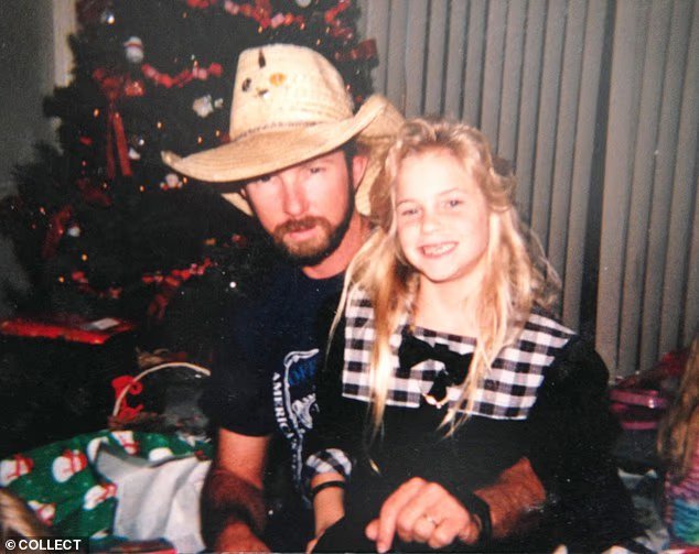 Virginia Roberts quando tinha 7 anos com seu pai, Skye Roberts, que negou as alegações em suas memórias póstumas de que ela foi abusada por ele.