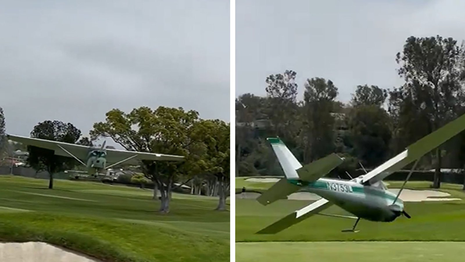A aeronave faz pouso urgente em frente aos golfistas no Rivera Country Club