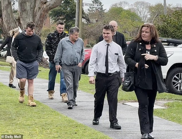 Tyson Michael Delbridge (direito a segundo) recebeu todos os sorrisos quando entrou no tribunal com seus pais e apoiadores na quinta -feira