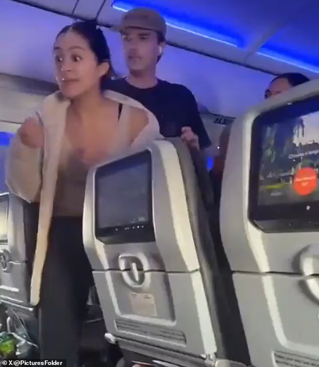 Outros passageiros horrorizados apareceram para impedi-lo de ir para a saída de emergência, e um deles afirmou que ele “tentou abrir a porta” antes do início do vídeo.