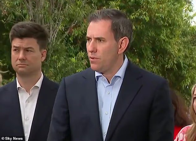 Uma mulher sensível está enfrentando o tesoureiro Jim Chamrs em uma conferência de imprensa em sua própria cidade, caindo em lágrimas em ferimentos recentes.