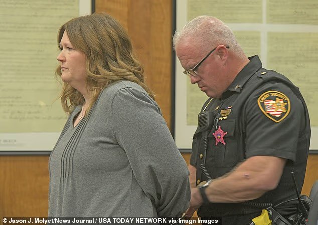 Stephanie Erin Calenberger (ilustrada), 41, foi mantida algemada e escoltada para fora do tribunal de Rachaland
