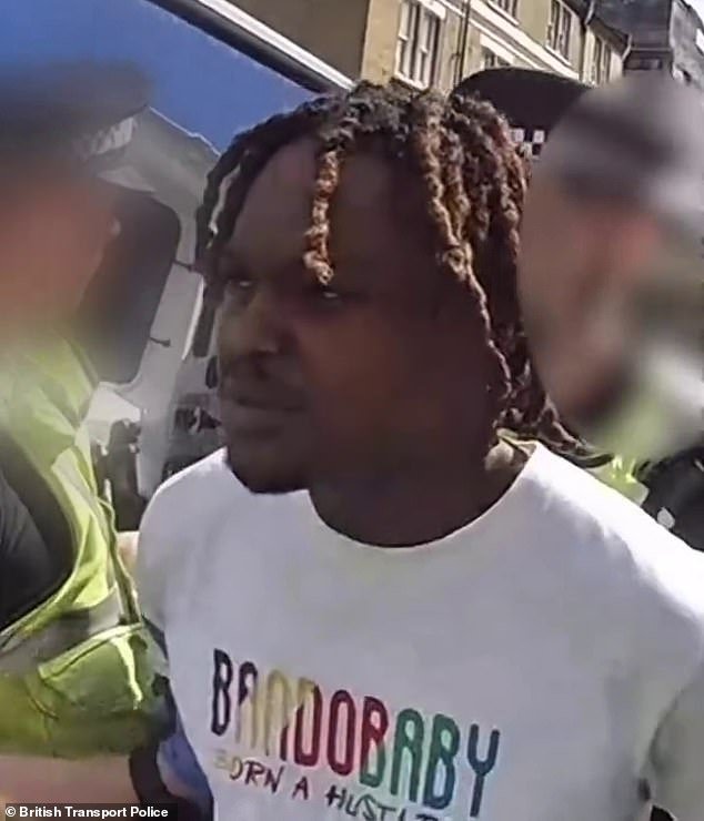 Nas imagens de vídeo publicadas pela British Transport Police, Miles são vistos como restringidos por policiais na rua.