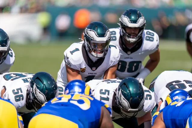 Em vez de avançar para uma zona vermelha, o quarterback do Philadelphia, Jallen Harts, devolveu a bola para a bola para correr para frente e para trás, que teve a última zona em 31-13 no terceiro trimestre de 31 a 25 na última zona em 31-13.