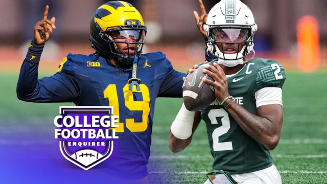 Michigan está envolvido em uma das maiores rivalidades do futebol universitário, mas esse jogo só é disputado no final da temporada. No entanto, para fazer com que “The Game” signifique mais, eles terão que enfrentar um rival no estado no sábado, quando o número 25 de Michigan visitar o estado de Michigan. Andy Staples, Ross Dellenger e Steven Godfrey mergulham no que aconteceu no estado de Michigan ao longo dos anos para diminuir essa rivalidade. Eles analisam a gestão de Jonathan Smith em East Lansing e depois conversam sobre como será a programação futura de Michigan antes do confronto com o número 1 do estado de Ohio. Será que a falta de jogos desafiadores do estado de Ohio voltará para afetá-los nesta temporada? Além disso, as últimas notícias na manhã de quinta-feira na NBA foram que Chauncey Billups e Terry Rozier foram presos em investigações de jogos de azar separadas. Os rapazes conversam sobre isso e como o jogo problemático pode afetar o futuro do futebol universitário.