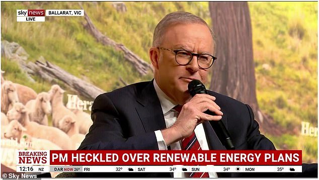 Os manifestantes de uma cúpula rural para o primeiro-ministro Anthony Albanes o odiavam, uma mulher pulou de pé quando tinha um NuJ no pescoço e a palavra ‘Vic Pharma’ em sua camiseta.