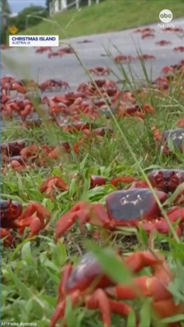 Milhões de caranguejos vermelhos fazem a sua migração anual para o oceano ao largo da Ilha Christmas, na Austrália.