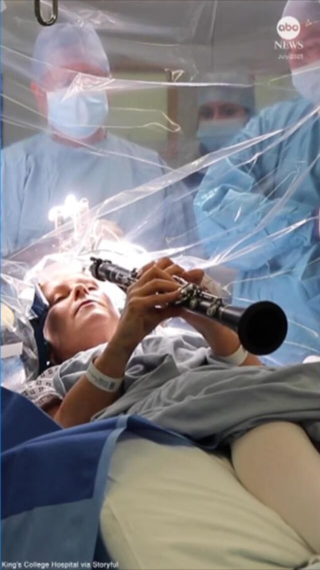 Um paciente submetido a uma cirurgia cerebral toca clarinete, permitindo que os cirurgiões ouçam imediatamente os efeitos do tratamento.