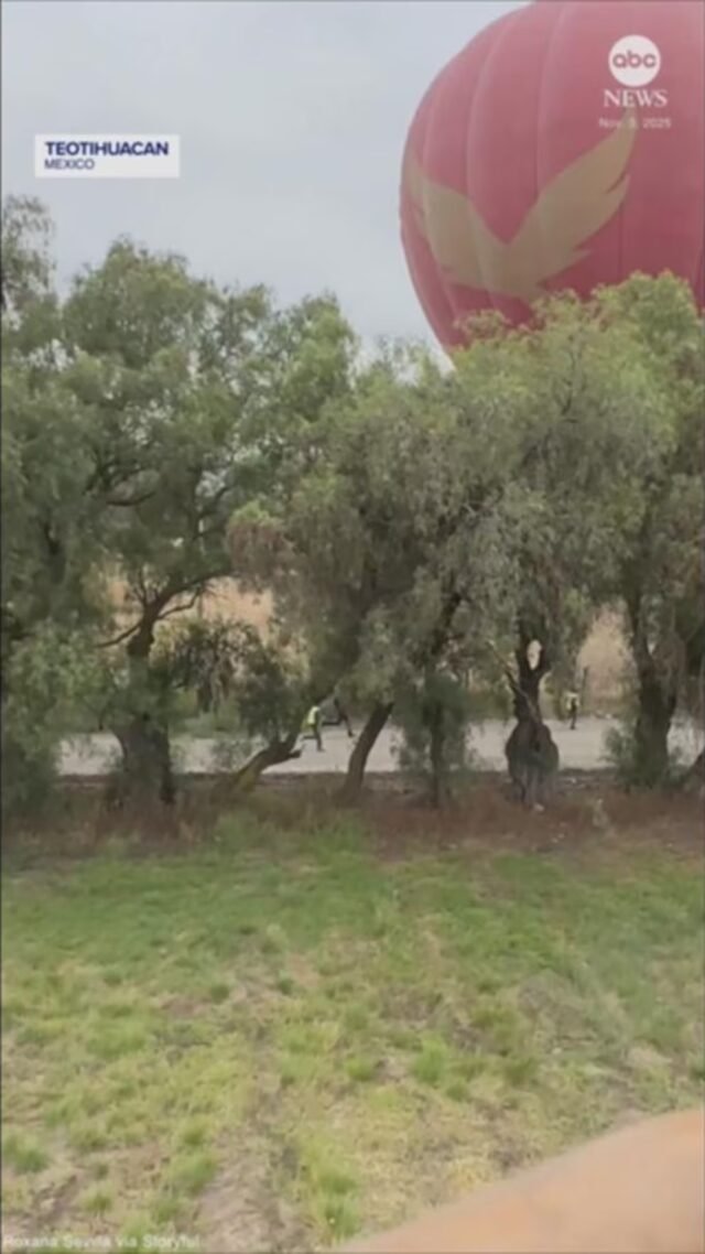 Um passeio de balão de ar quente no México terminou com um estrondo quando o balão flutuou diretamente em direção a uma árvore, espalhando galhos na cesta.
