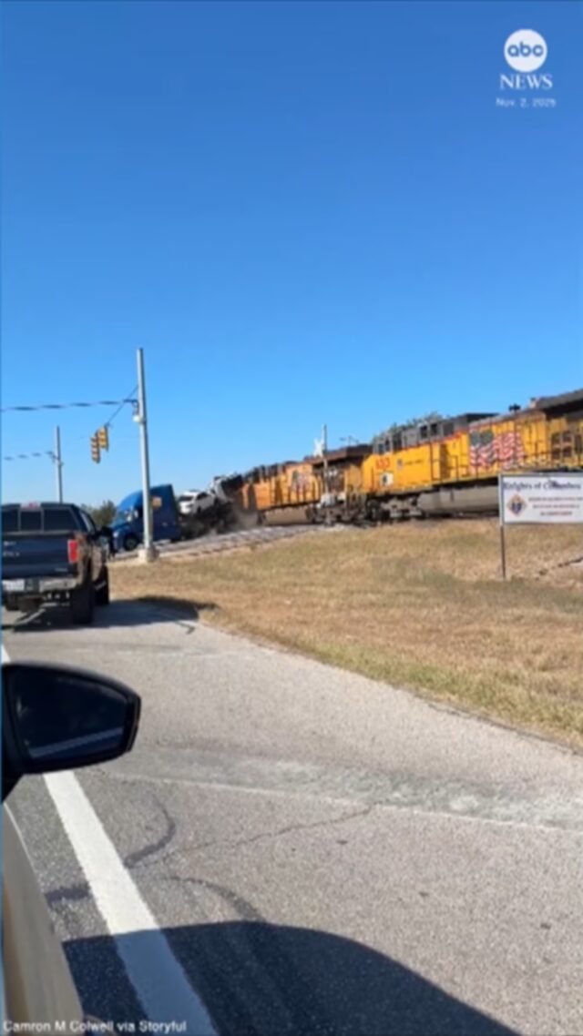 ASSISTIR: Trem atinge semirreboque preso nos trilhos no Texas