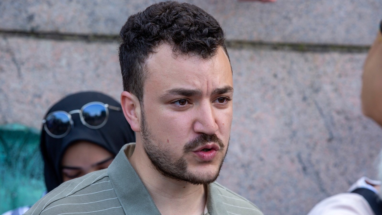O negociador estudante Mahmud Khalil foi visto em um campo de protesto palestino em 23 de abril de 2021 no campus da Universidade de Columbia, em Nova York.