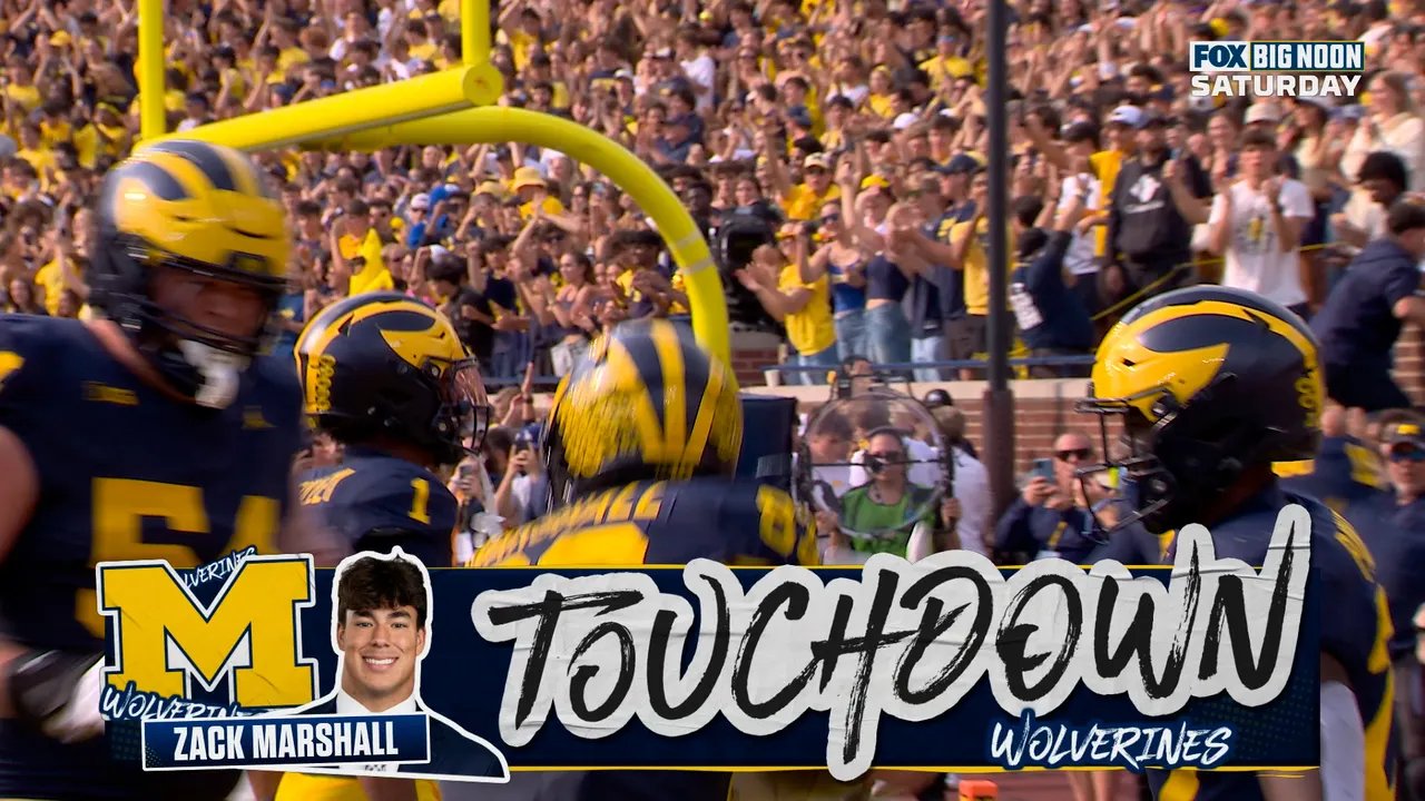 Bryce Underwood encontra Zach Marshall para um caça-tanques de 10 jardas para estender a liderança do Michigan Wolverines sobre o Washington Huskies.