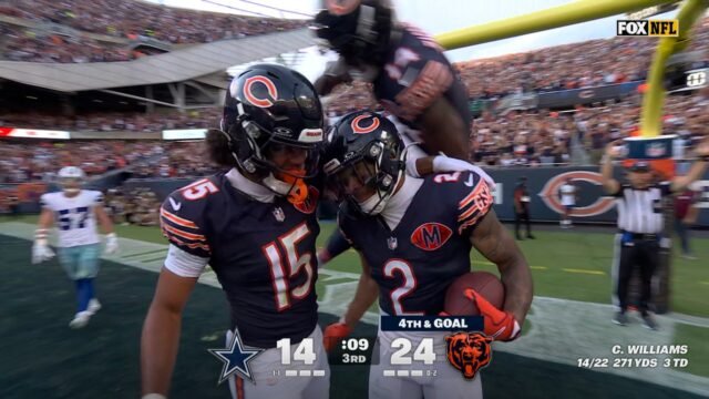 Caleb Williams Dallas encontrou o DJ Moore por quatro metros para aumentar a liderança do Chicago Bears nos Cowboys.