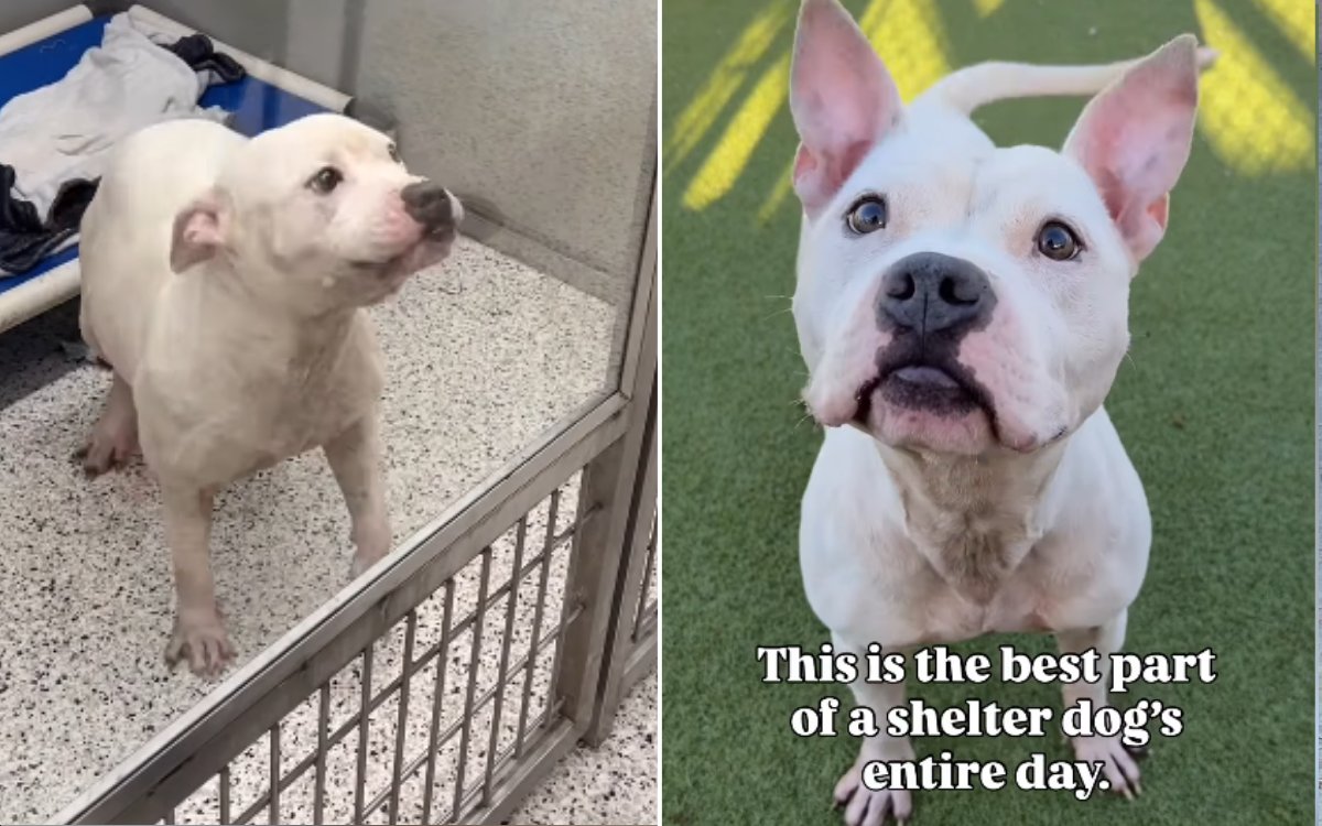 O cão do abrigo Brutus ganhou atenção online quando um clipe dele parecendo “muito grato” por poder esticar as pernas foi postado no Instagram. A filmagem foi capturada por Marvey Gurces, voluntário do Fulton County Animal Services da Geórgia, que criou a conta. De Pitts a Pêssegos Para destacar a situação de cães como Brutus.