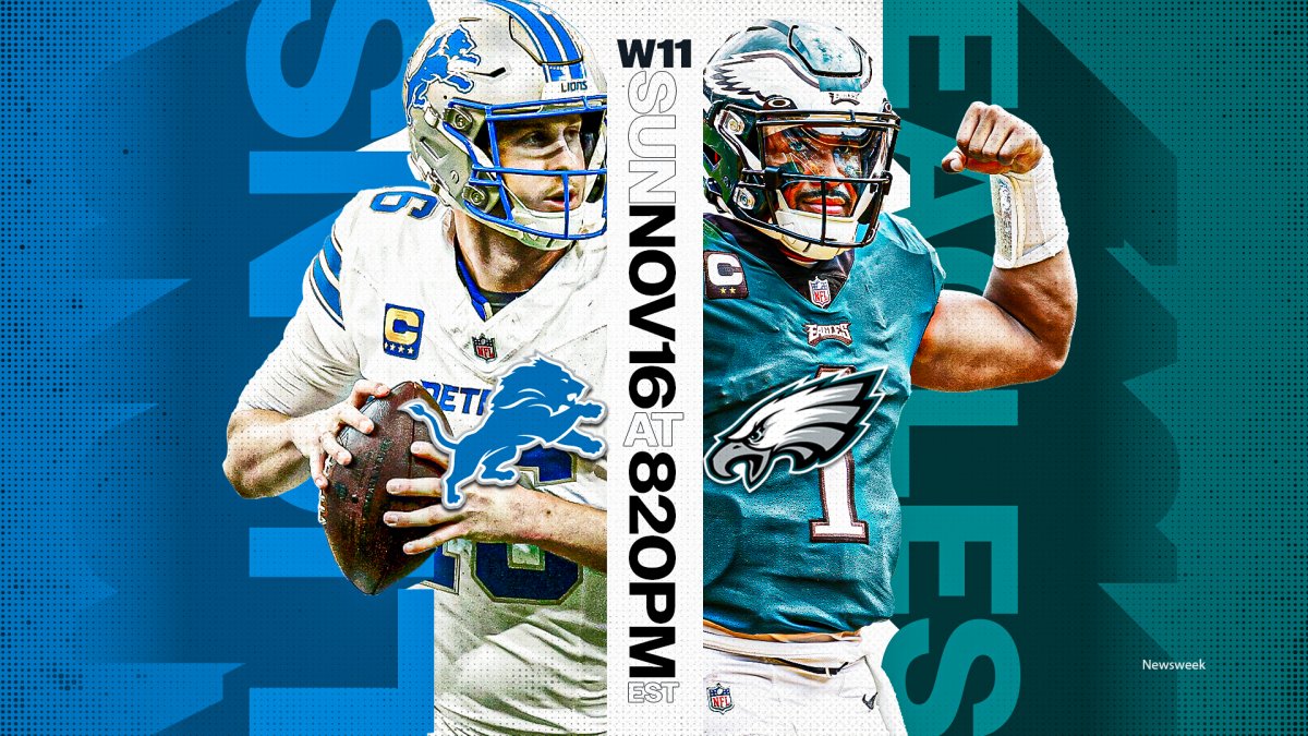 Jared Goff e o Detroit Lions enfrentam Jalen Hurts e o Philadelphia Eagles na Semana 11 da temporada da NFL no Sunday Night Football no Lincoln Financial Field.