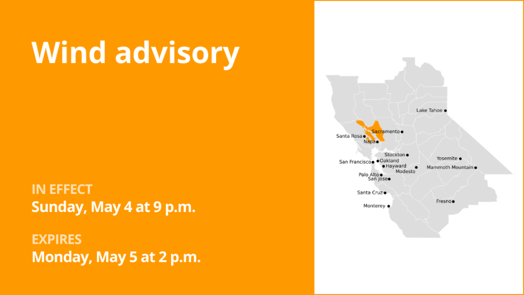 O NWS São Francisco CA “Espera -se que os ventos do norte sejam de 55 milhas por hora, a 20 a 30 milhas por hora”.