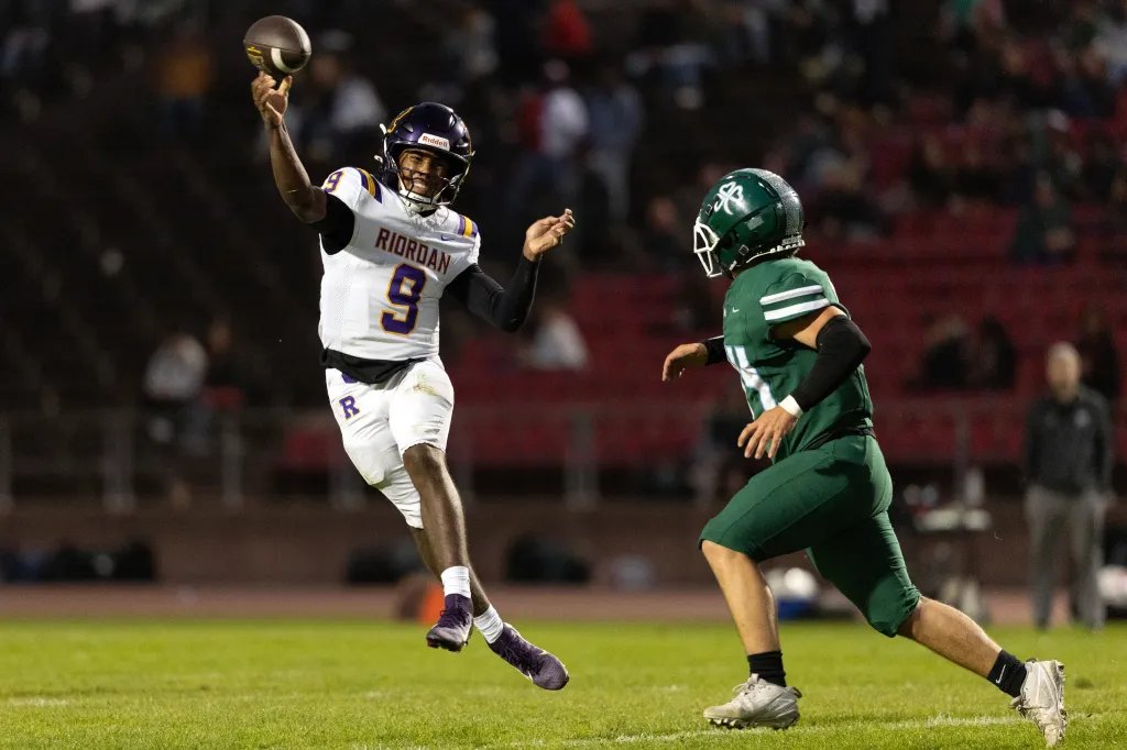 O quarterback sênior Michael Sergeant sofreu uma lesão duas semanas depois, depois de jogar 254 jardas e três touchdowns, Sacred Heath retornou à Catedral, mas a frente do Rioardan enfrentou pressão contínua de sete para sete. O último DJ defensivo Sanchez e Zachari Clappin amarraram o par para vários sacos e forçados a fazer um, enquanto Linebakar Tevita Tuifua desceu para fazer uma pausa que estabeleceu outra pontuação de Riotan.