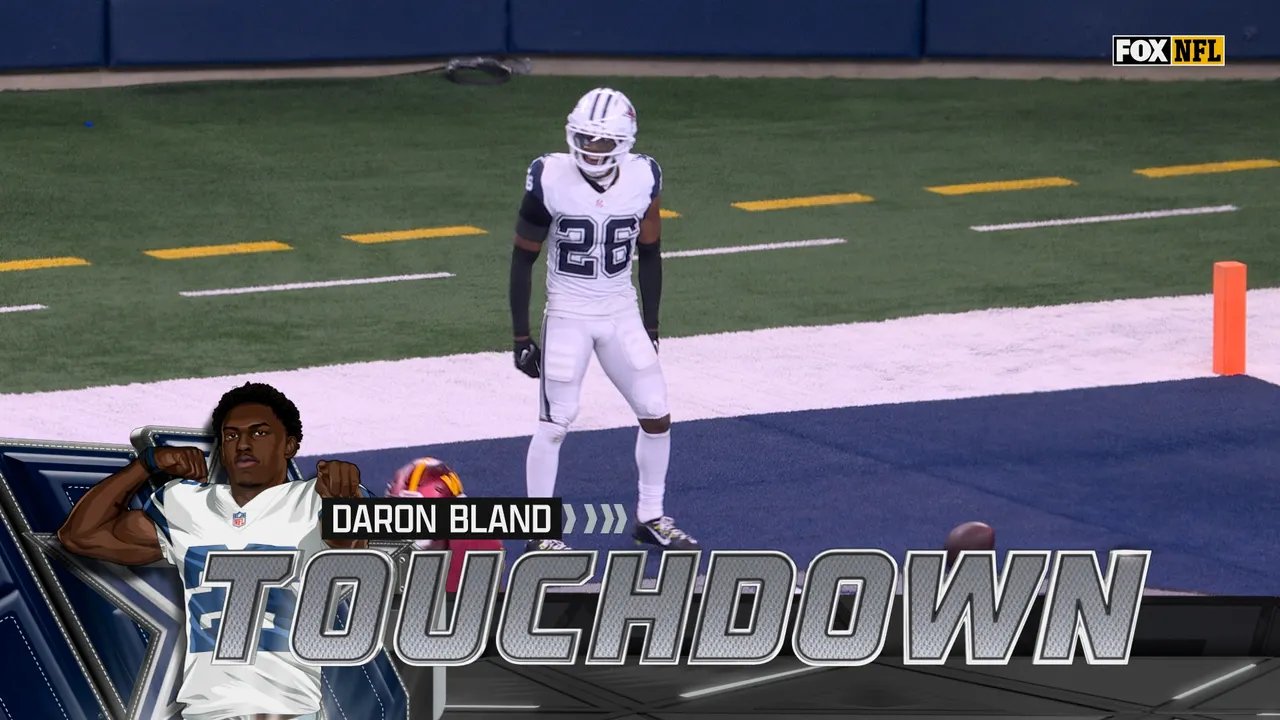Darron Bland acertou o passe e devolveu para um caça-tanques, ampliando a vantagem do Dallas Cowboys sobre o Washington Commanders.