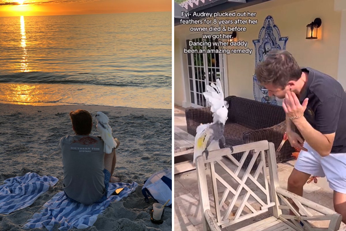 Um Kakatu resgatado que passou por quase uma década para lamentar sua pena de luto, ele se tornou viral depois de seu vídeo de dança com seu novo proprietário com uma pena saudável.