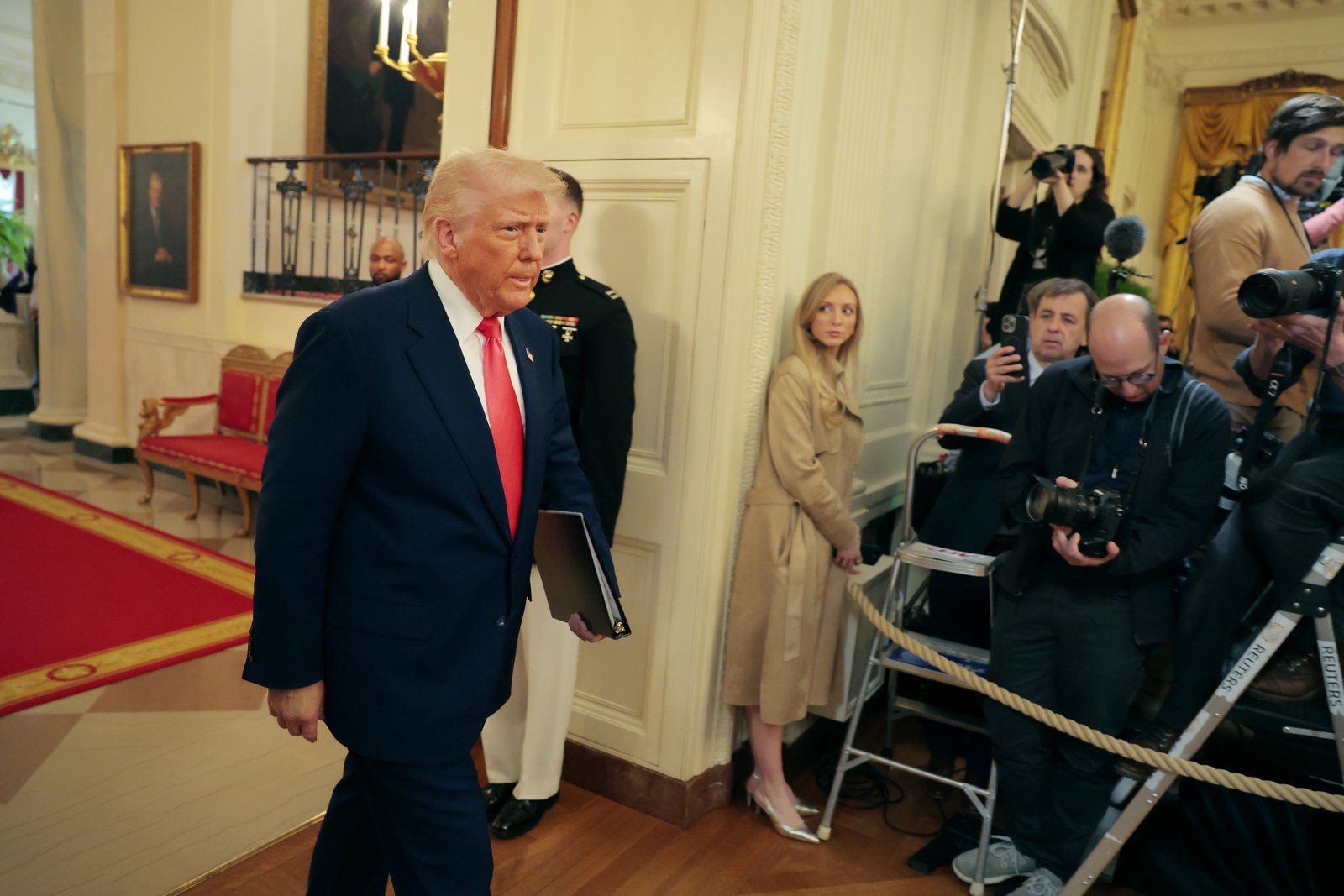 O presidente dos EUA, Donald Trump, chegou a Washington DC em 7 de abril de 2012 em uma assinatura da Ordem Executiva na Sala Leste da Casa Branca. O presidente dos EUA, Donald Trump, chegou a Washington DC em 7 de abril de 2012 em uma assinatura da Ordem Executiva na Sala Leste da Casa Branca. Anna Money Maker/Getty Fig